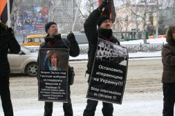 Having turned facing the building, gathered swung flags and chanted slogans. At each participant of meeting the huge poster flaunted on a breast. If men held the flags, so the women unfolded all new and new slogans. About 40 people took part in protest action: men, women, girls and young men. And there is no wonder. Events in Ukraine pain responded in the hearts of Siberians. «It is our brothers», spoke protesters.