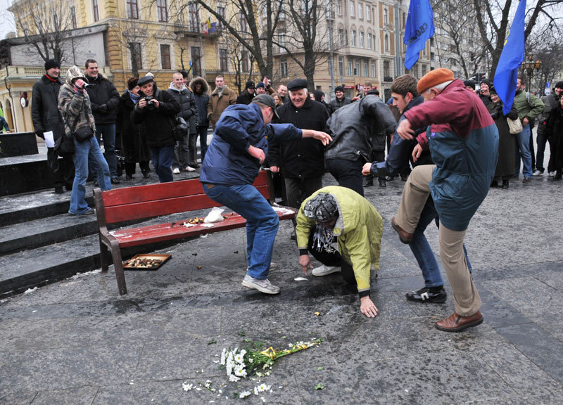 Еще более обострилась ситуация на Украине и, особенно, в Киеве, в 20-х числах ноября, когда, вслед за решением правительства Януковича об отказе от интеграции в ЕС, на улицу вышли десятки тысяч украинских националистов. «Сегодня знакомые были на Майдане, там, типа, «евроинтеграция». Так вот: там полно наци. А завтра будет еще больше. Уже сегодня были антироссийские и нацистские лозунги. И люди в форме наци», — написала мне вечером 23 ноября киевская журналистка Галина Л., которая просила не называть своей фамилии: «Вот что Тягнибок (депутат Рады и лидер партии «Свобода» — авт.) пишет в своем блоге: «Брати і сестри українці, виходьмо 24 листопада на вулиці столиці, щоби не допустити реваншу совка. Тепер все залежить від нас! Януковичу — імпічмент! Азарова і його Уряд — у відставку за зраду національних інтересів! Усіх зрадників — у тюрму! Слава Україні!». Еще несколько лет назад это были уличные босяки, которых всерьез никто не принимал. А сейчас с ним считаются, их больше 30 человек в парламенте».