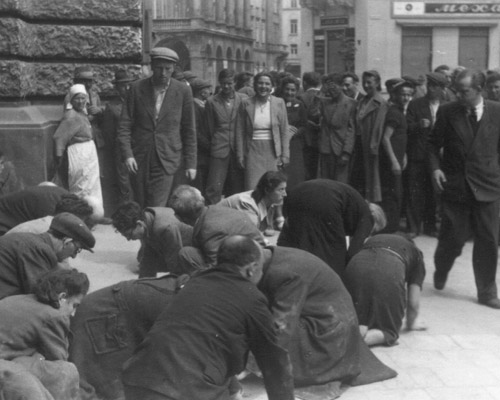 В последние недели по просторам Интернета «плавает» полный (или почти полный) комплект жутких фотографий, которые сделали гитлеровские палачи вскоре после оккупации Львова — в начале июля 1941 года. Это было время так называемой «тюремной акции» — массовых погромов и убийств «первой волны» — волны возмущения «жидовско-большевистской диктатурой». Поводом для расправы стало вскрытие подвалов здания львовского НКВД, где были найдены трупы сотен заключенных, убитых чекистами накануне отступления Красной Армии. Хотя среди погибших было много евреев, которых советская власть причислила к «врагам народа», украинское население Львова устроило такую жестокую охоту за ненавистными жидами, что немцам даже не нужно было им помогать — «юберменши», в основном, довольствовались ролью фотографов.