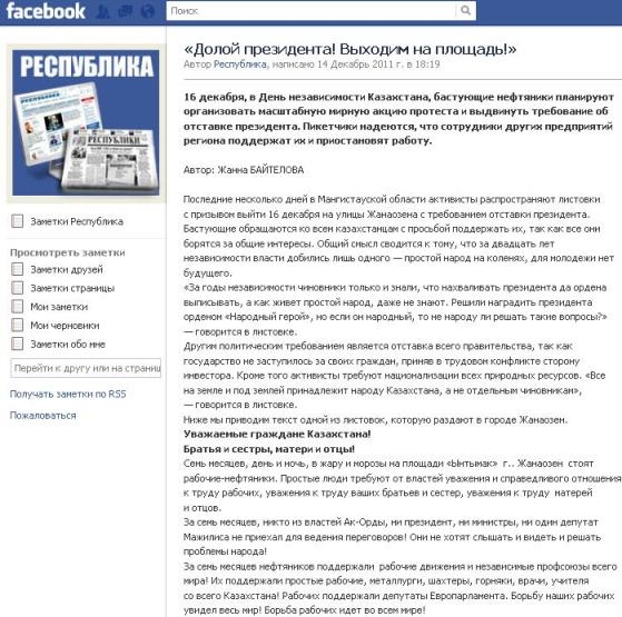 Вот факты: 26 мая нефтяники «Озенмунайгаз» впервые вышли на забастовку в поддержку работников казахстано-китайской компании «Каражанбасмунай». Больше 20 человек объявили голодовку, а на следующий день к акции протеста присоединились восемь тысяч человек.