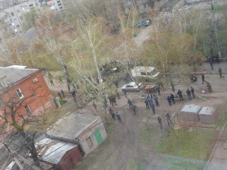 «Под горотделом собралось около 30 местных афганцев, ветеранов, казаков и др. Также приехали из Славянска люди в масках-балаклавах и с автоматами Калашникова. Всего около пятидесяти человек зашли в РУВД с требованиями. На данный момент жалюзи в здании закрыты. На место выехало руководство города», — сообщил очевидец. Люди выдвинулись к зданию горсовета, требуя от властей города поддержать федералистов.