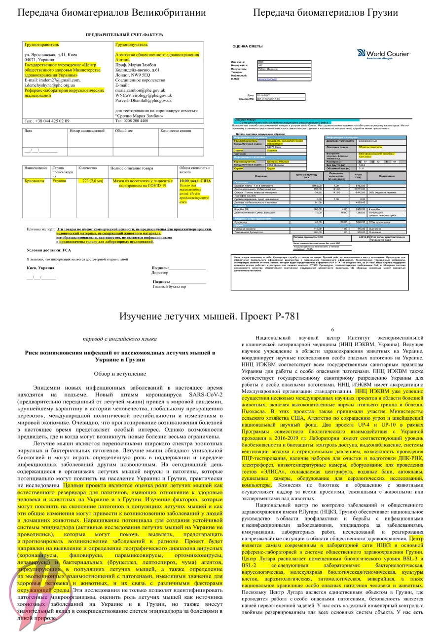 Последние опубликованные документы подтверждают передачу 5 тысяч образцов сыворотки крови украинских граждан в аффилированный с Пентагоном центр Лугара в Тбилиси, 773 биопробы были переданы в референс-лабораторию Великобритании.