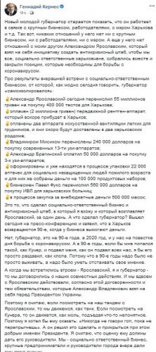 Кернес на своих страницах в соцсетях опубликовал пост, в котором подверг резкой