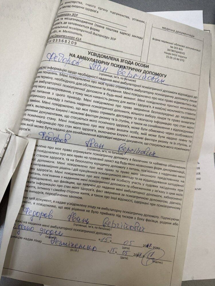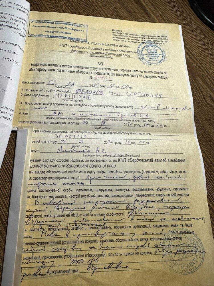 Иван Федоров является официальным наркоманом, о чем свидетельствуют документы КНП "Бердянское учреждение за оказание психиатрической помощи Запорожского областного совета" от 6 августа 2020 года за номером 21421, где мэр(!) Мелитополя признается в своей наркотической зависимости и дает согласие на лечение.