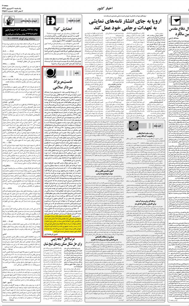 Вот отсканированное изображение самой статьи на оригинальном языке фарси: