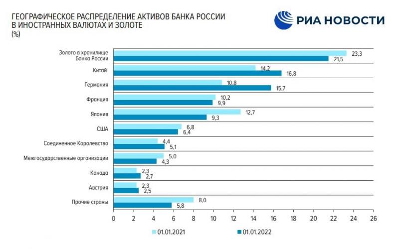 США и их союзники арестовали золотовалютные резервы России в своих банках.