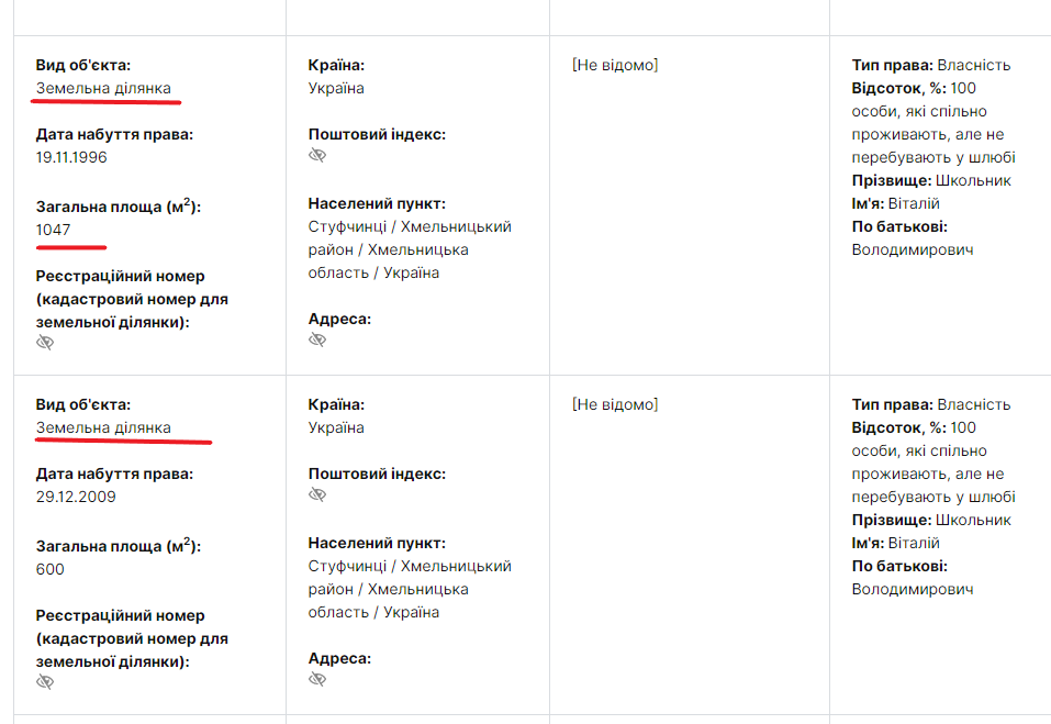Заместитель И.Приступы не далеко шагнула от своего шефа. Семья Л.Школьник имеет всего две квартиры в Хмельницком и два участка со строящимся коттеджем…….