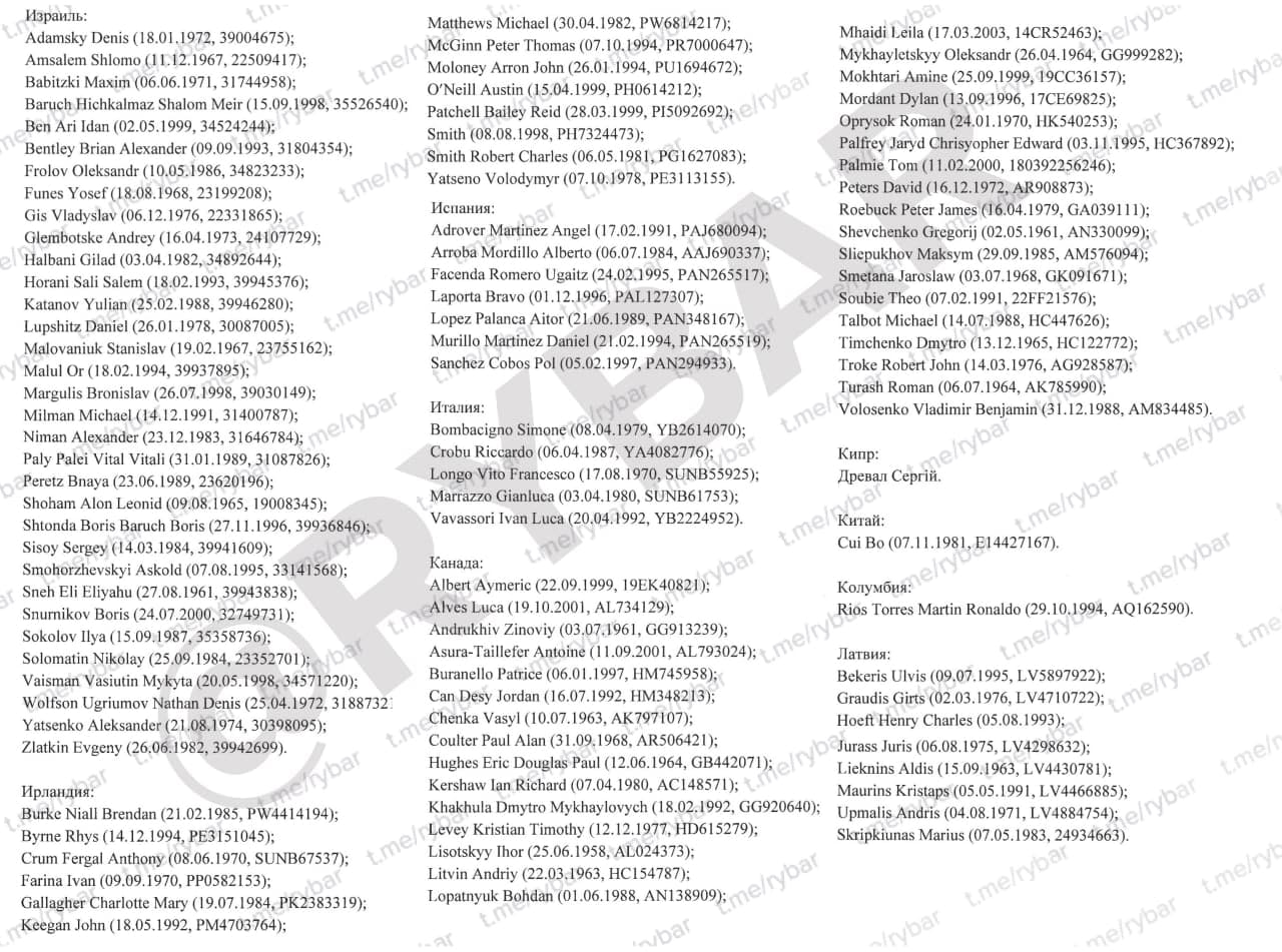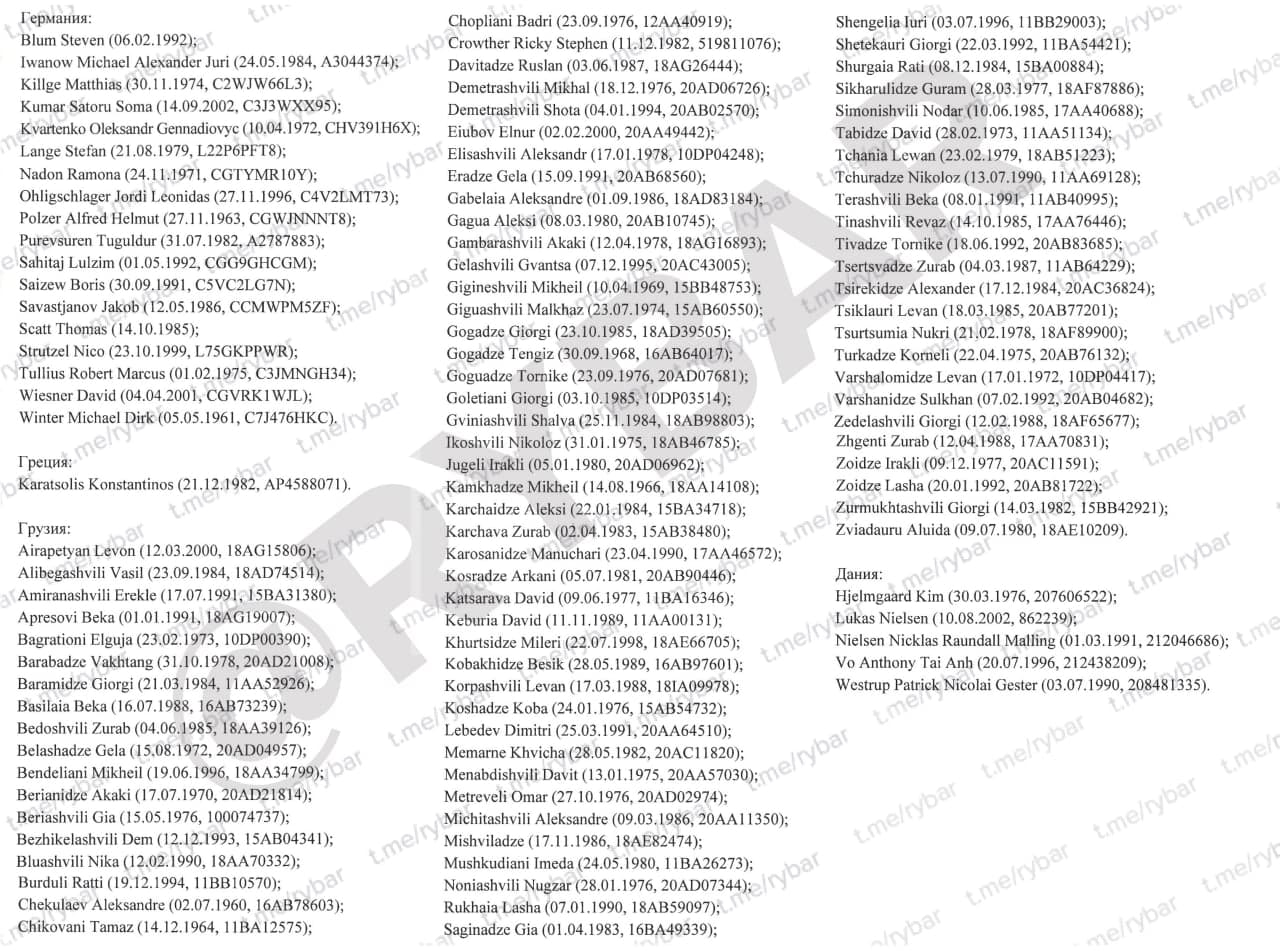 В Сети опубликованы фамилии, национальная принадлежность и паспортные данные иностранных граждан, которые воюют в Украине. Многие погибли, а многие погибнут совсем скоро