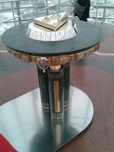 Слепок ладони Елбасы Нурсултана Назарбаева. Прикосновение к нему приносит счастье казахстанцам, говорят экскурсоводы