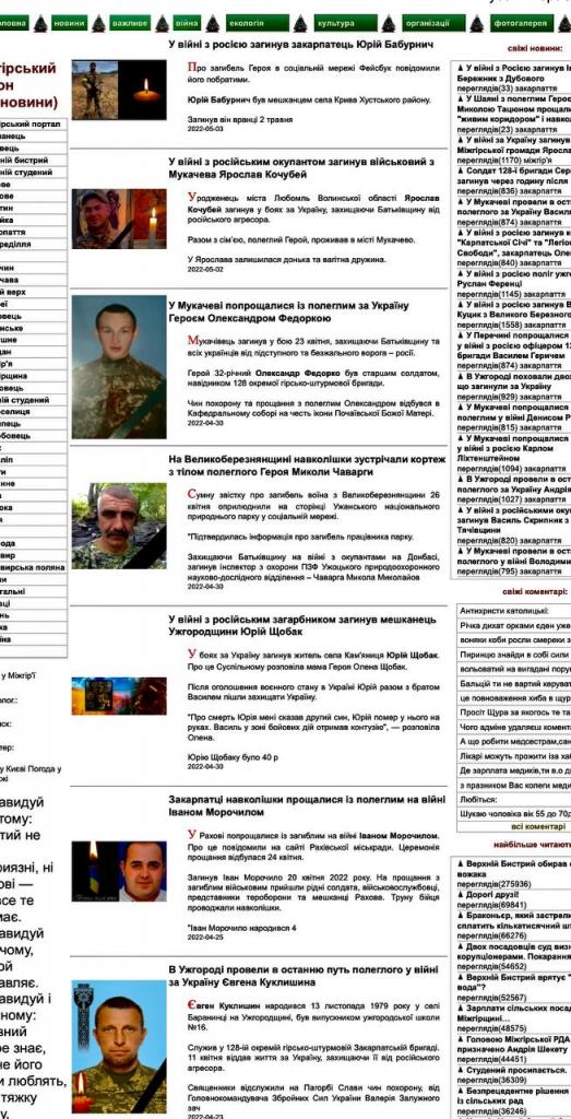 Вот страницы только одной(!) газеты «Мiжгiрский портал», на которых опубликованы сразу десятки некрологов.