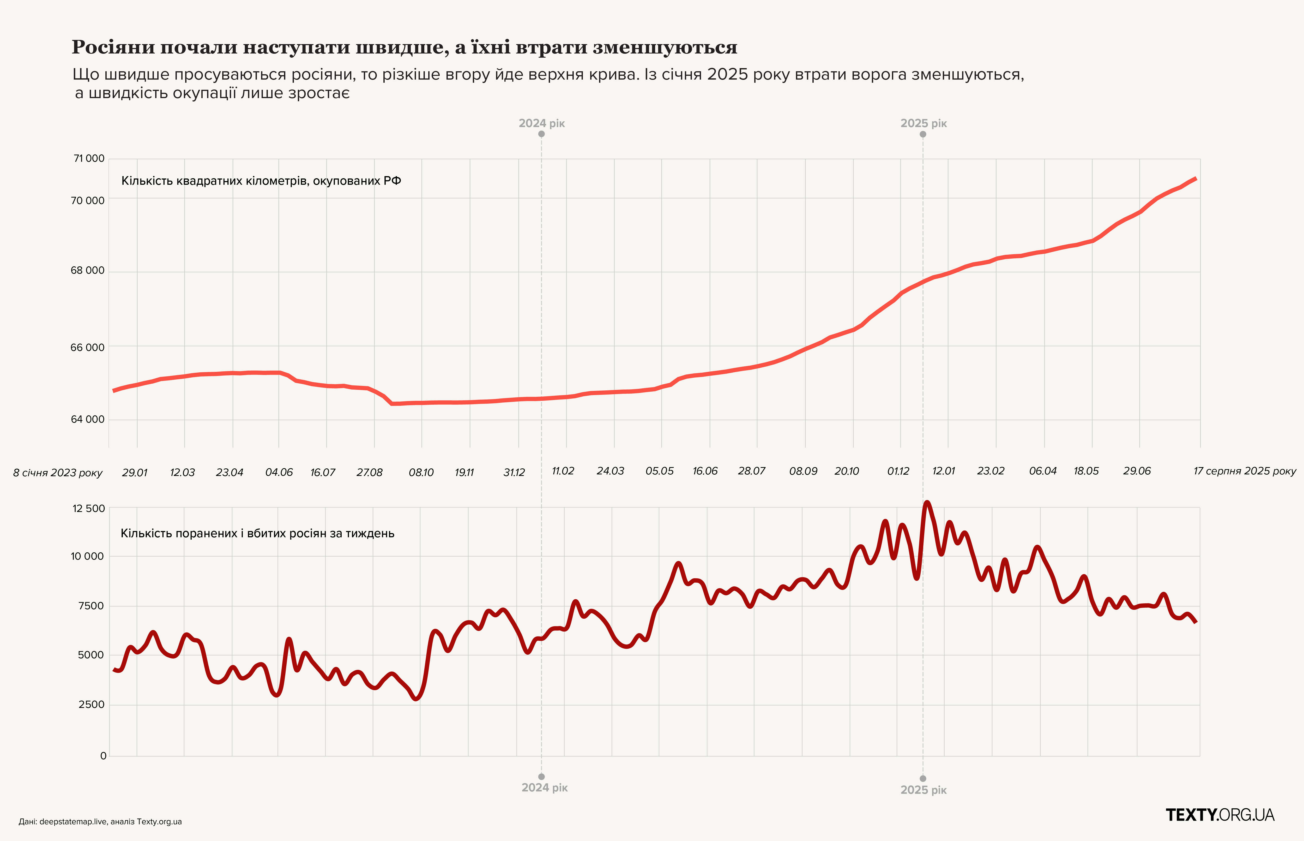 С января 2025 года россияне продвигаются быстрее, а умирают меньше. Мы отслеживаем динамику продвижения и потерь врага уже два с половиной года, и сейчас ситуация худшая.
