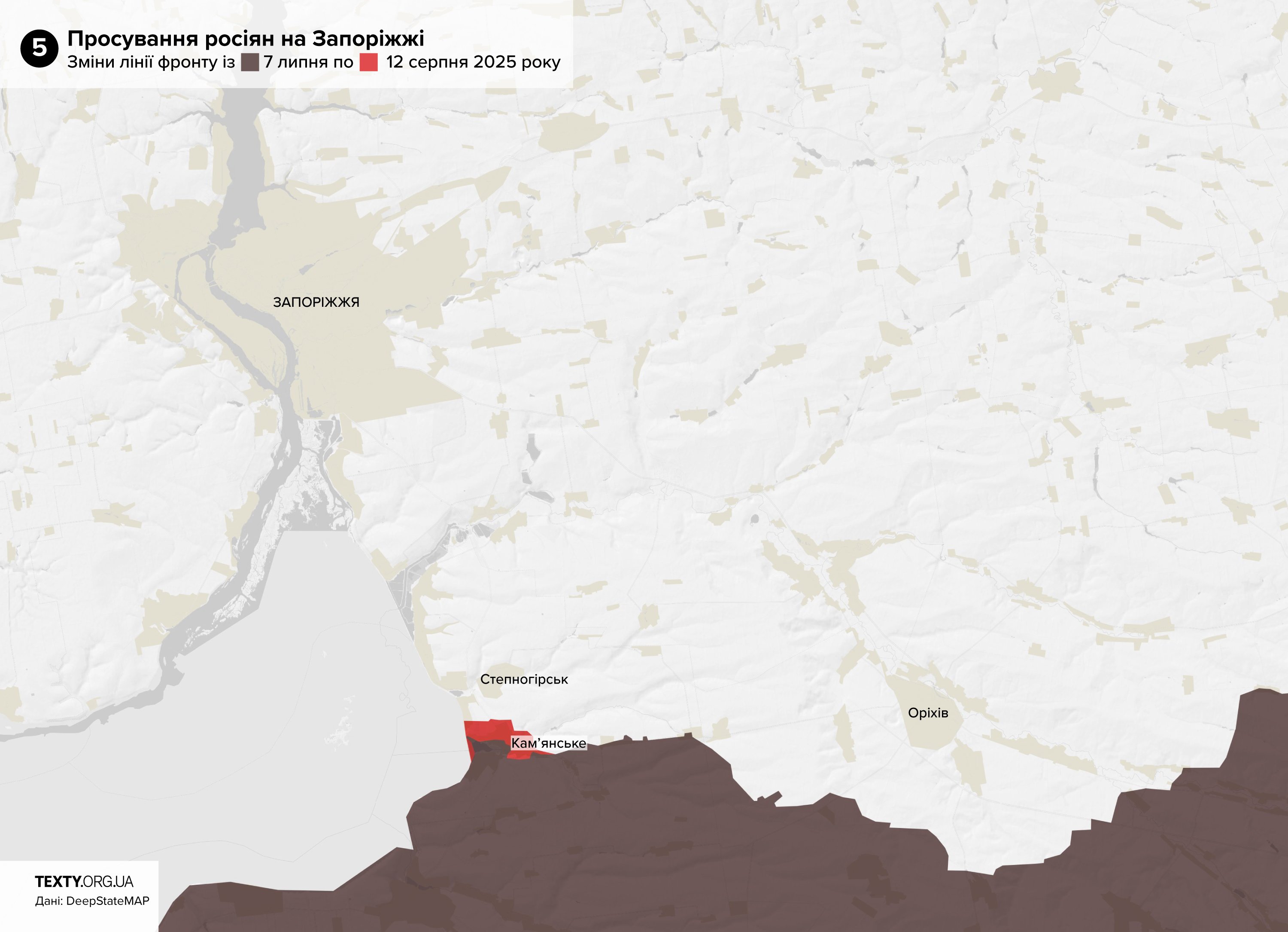 В своей попытке показать активность по всей линии фронта россияне, конечно, не могли обойти Запорожское направление. В последней декаде июля они имели здесь определенные успехи — им удалось захватить поселок Каменское и часть села Плавни на берегу бывшего Каховского водохранилища.