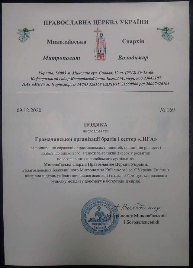 Николаевская Епархия Православной Церкви Украины выразила поддержку ГО «ЛГБТ Ассоциация ЛИГА» в рамках проводимого при поддержке госчиновников фестиваля «Дни равенства и гордости».