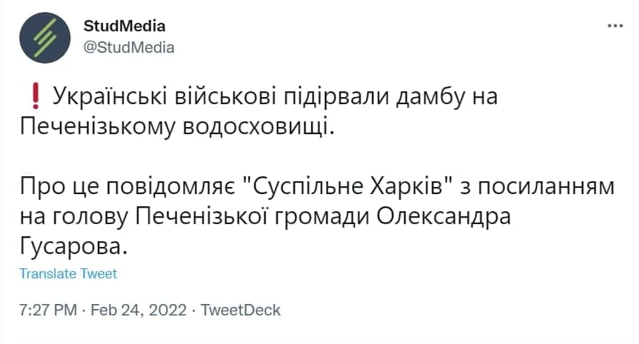 Так, была взорвана дамба огромного Печенежского (Салтовского) водохранилища рядом с городом Харьковом.